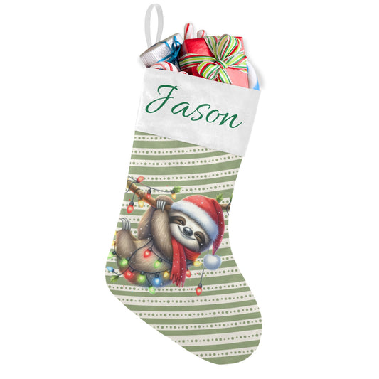 Sloth Christmas Stocking Custom Name Santa Socks Gift