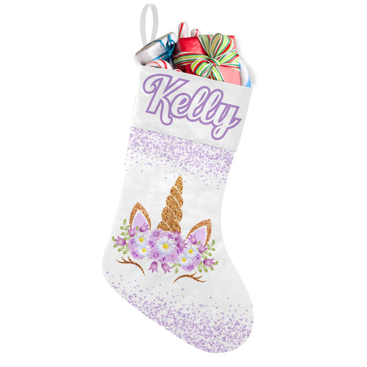 Purple Unicorn Christmas Stocking Custom Name Santa Socks Gift