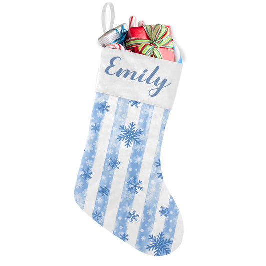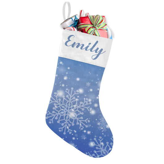 Snowflakes Blue Christmas Stocking Custom Name Christmas Socks Gift