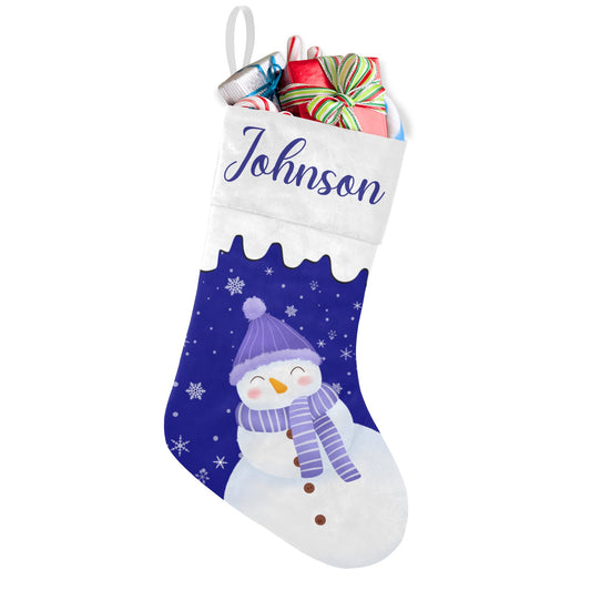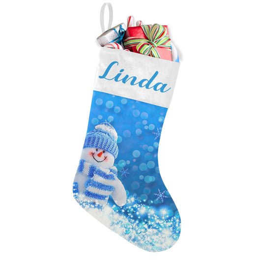 Snowman Blue Christmas Stocking Custom Name Christmas Socks Gift