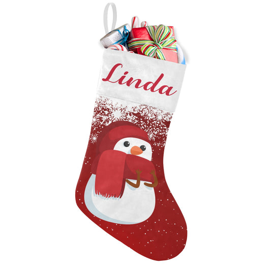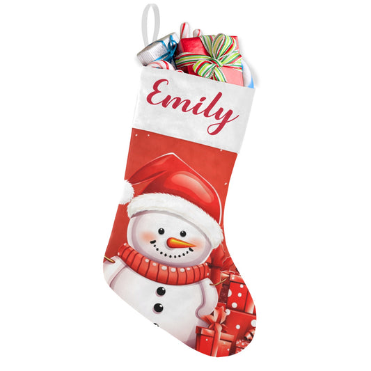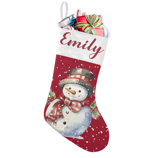 Snowman Red Christmas Stocking Custom Name Christmas Socks Gift