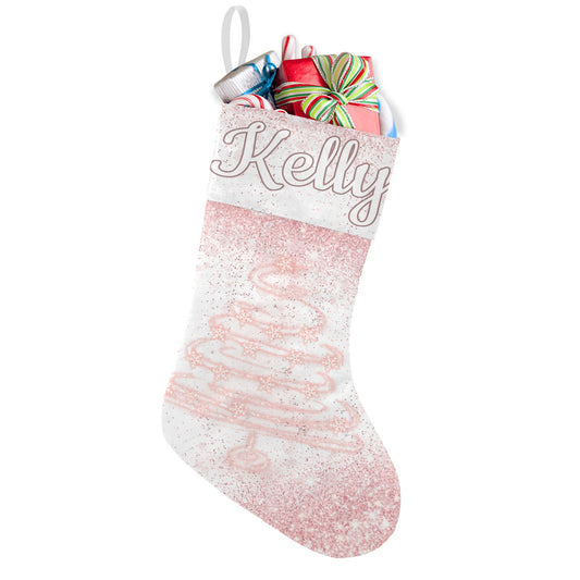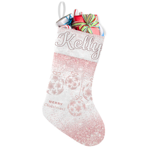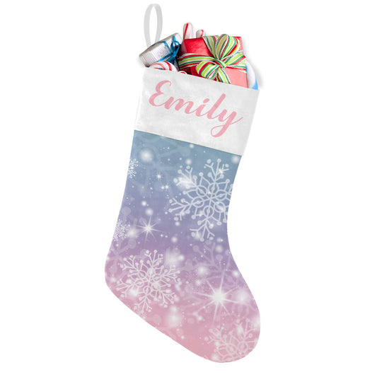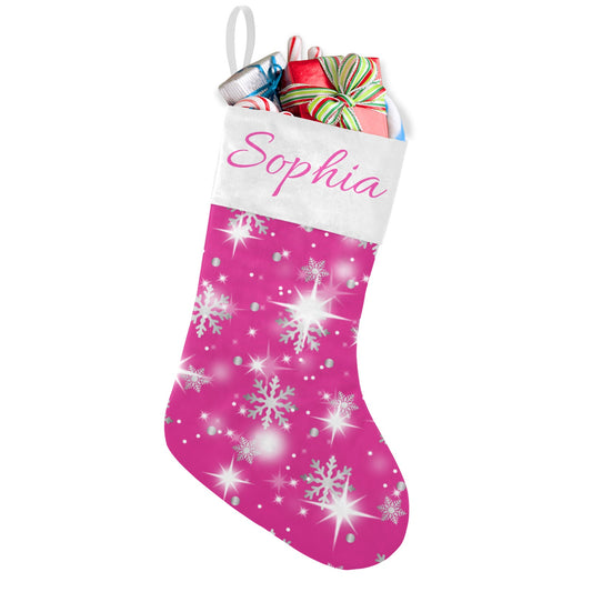 Snow flake pink Christmas Stocking Custom Name Santa Socks Gift