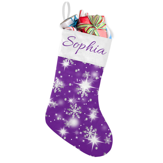Snow flake purple Christmas Stocking Custom Name Santa Socks Gift
