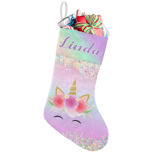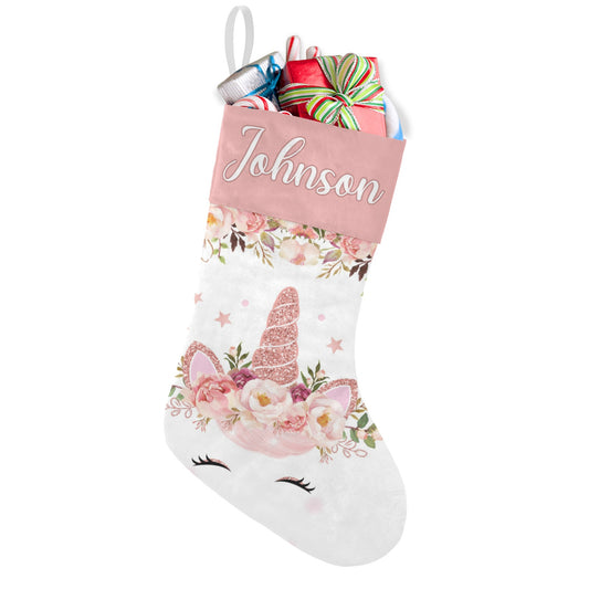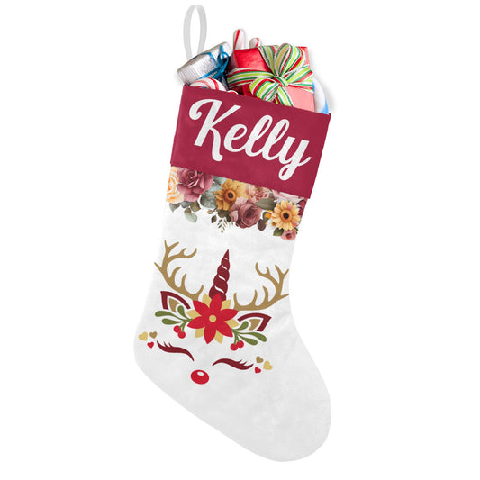 Unicorn Floral Christmas Stocking Custom Name Christmas Socks Gift