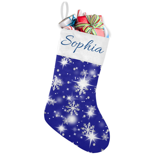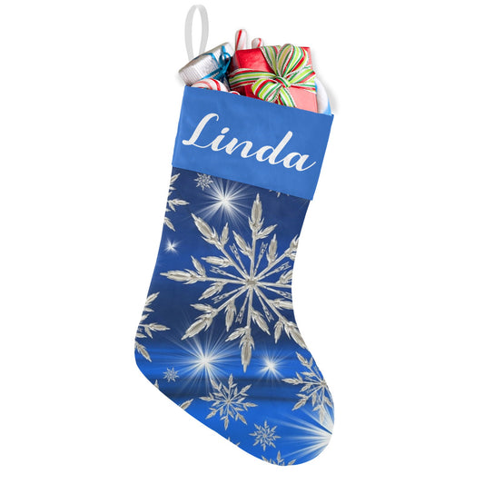 Snow flake blue Christmas Stocking Custom Name Santa Socks Gift