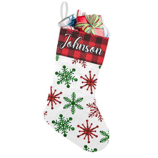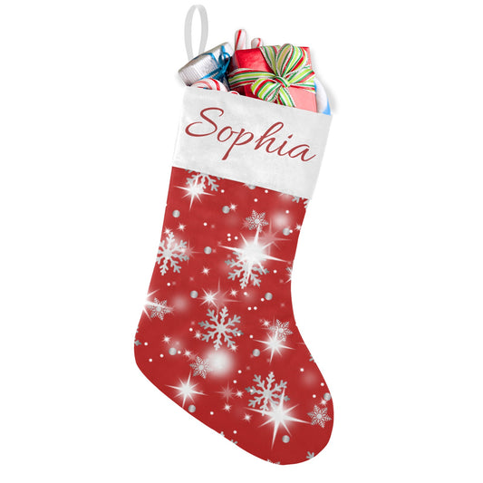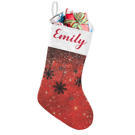 Snow flake red Christmas Stocking Custom Name Santa Socks Gift