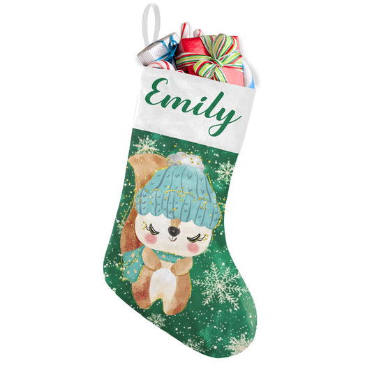 Snowflake Fox Christmas Stocking Custom Name Christmas Socks Gift