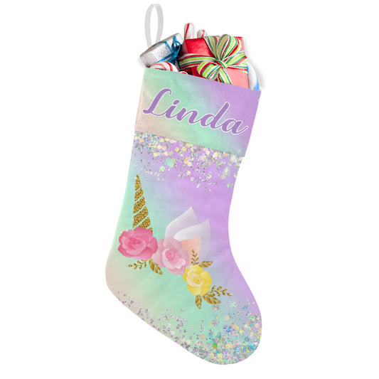 Unicorn Christmas Stocking Custom Name Santa Socks Gift