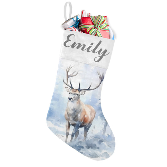 Snowy Deer Christmas Stocking Custom Name Christmas Socks Gift