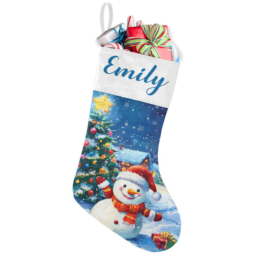 SNOWMAN Christmas Stocking Custom Name Santa Socks Gift