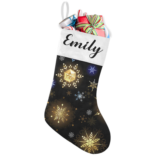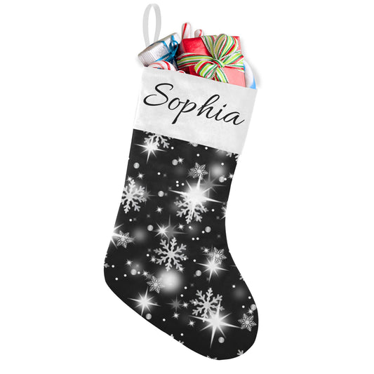 Snowflakes Black Christmas Stocking Custom Name Christmas Socks Gift