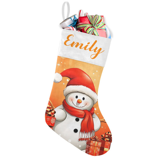 Snowman Orange Christmas Stocking Custom Name Christmas Socks Gift