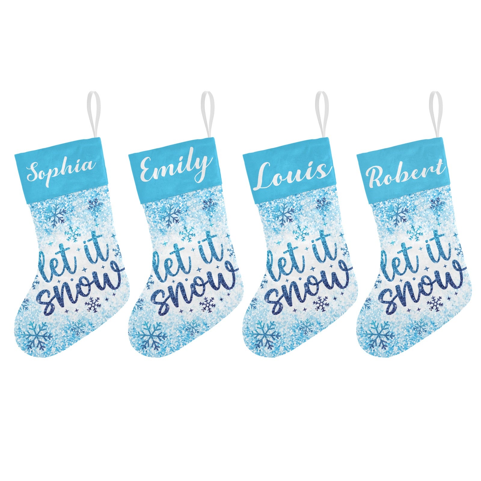 Let It Snow Blue Christmas Stocking Custom Name Christmas Socks Gift