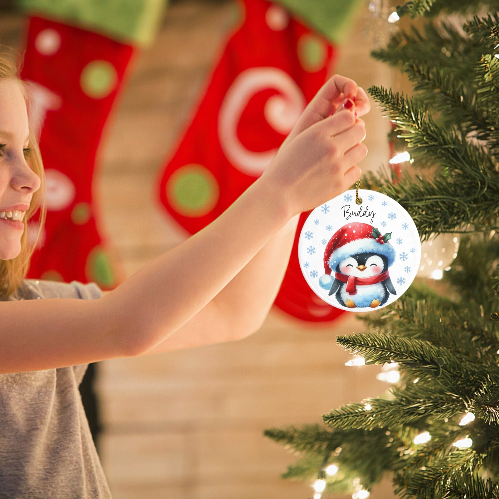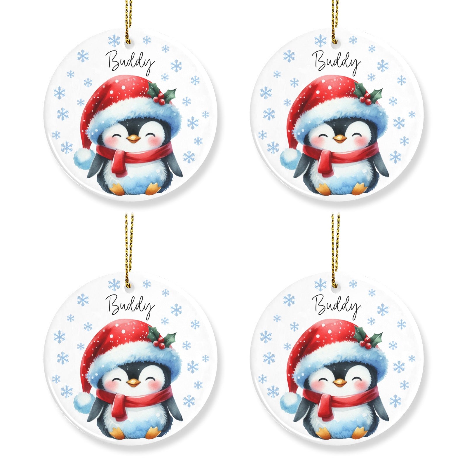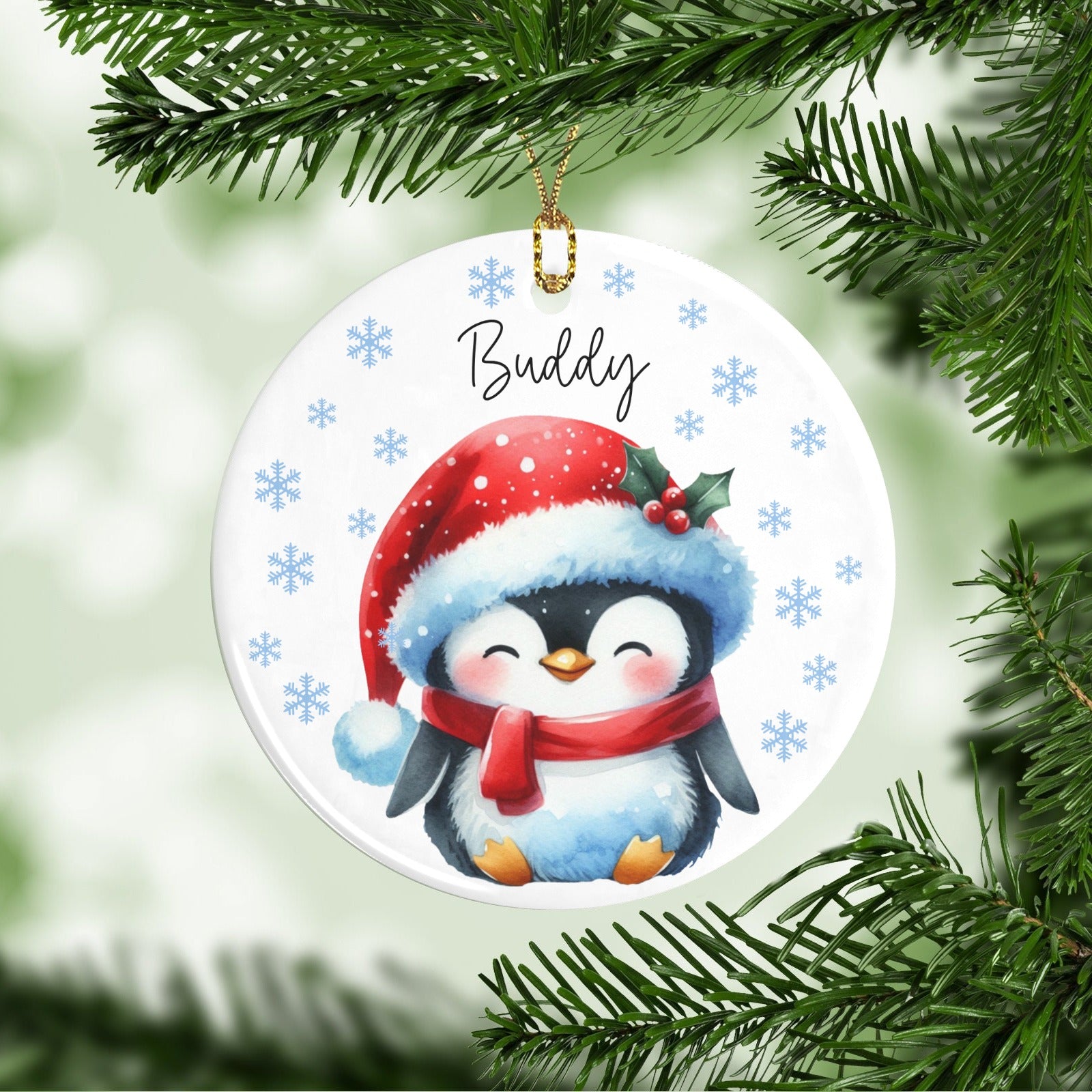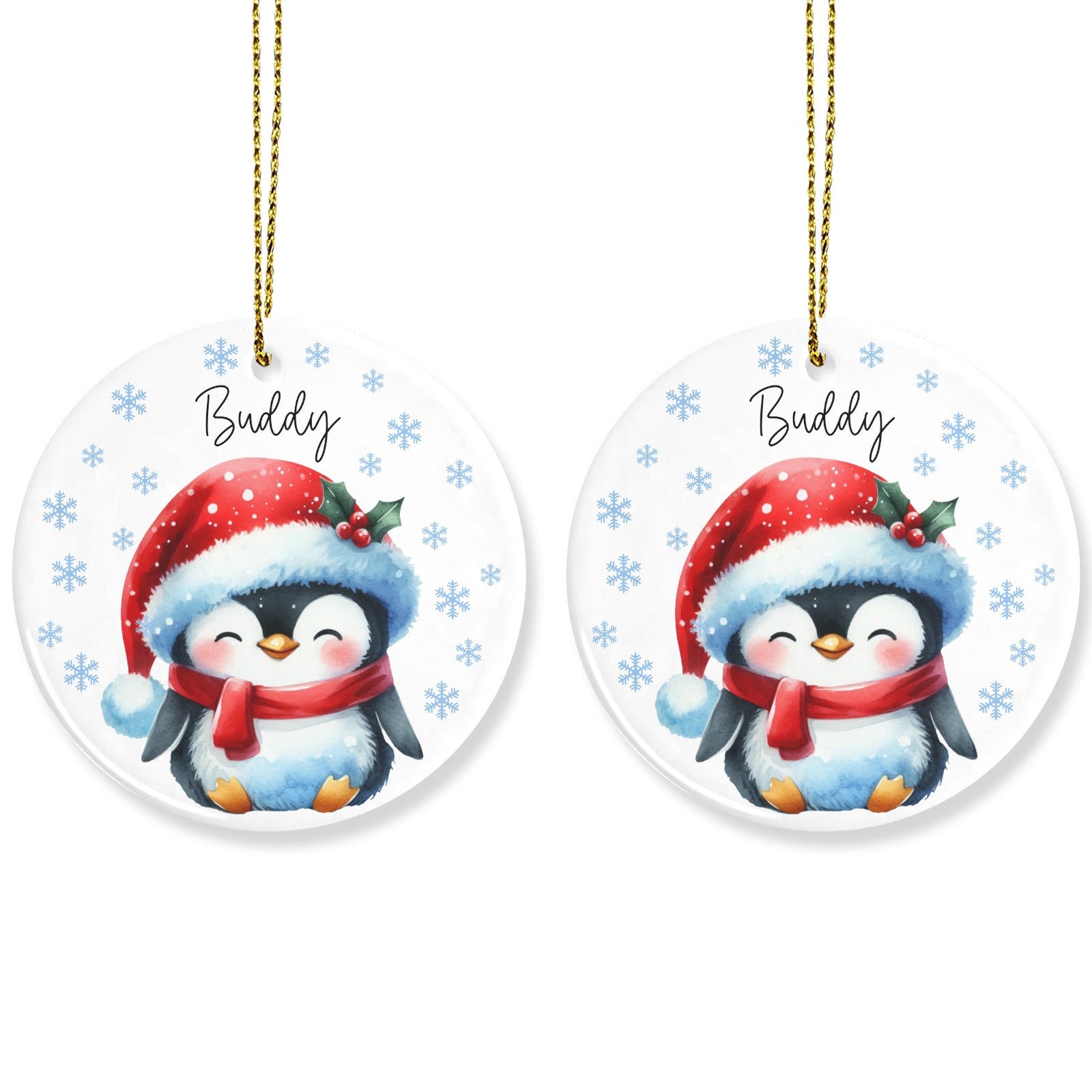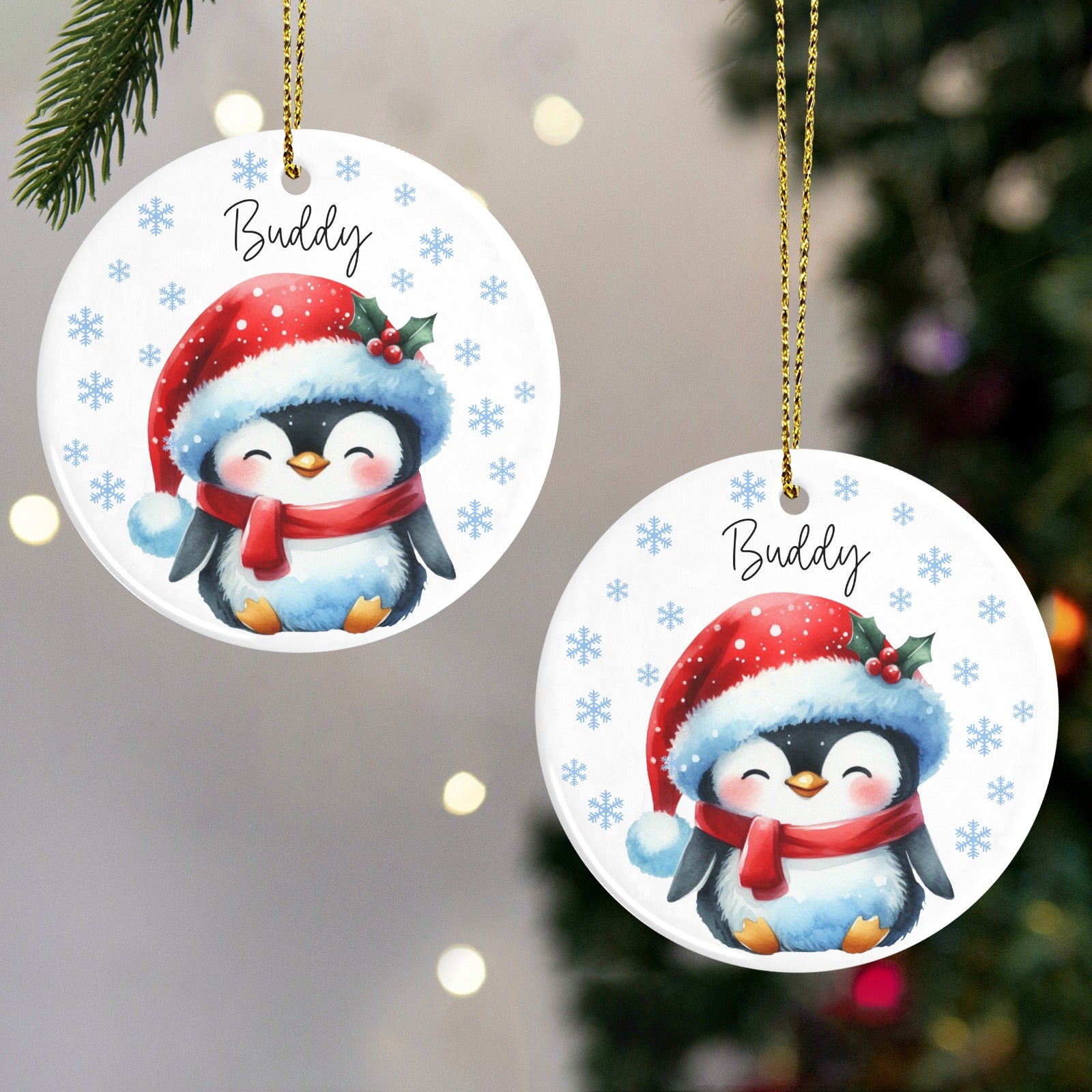 Penguin Christmas Ornaments Custom Name Santa Gift