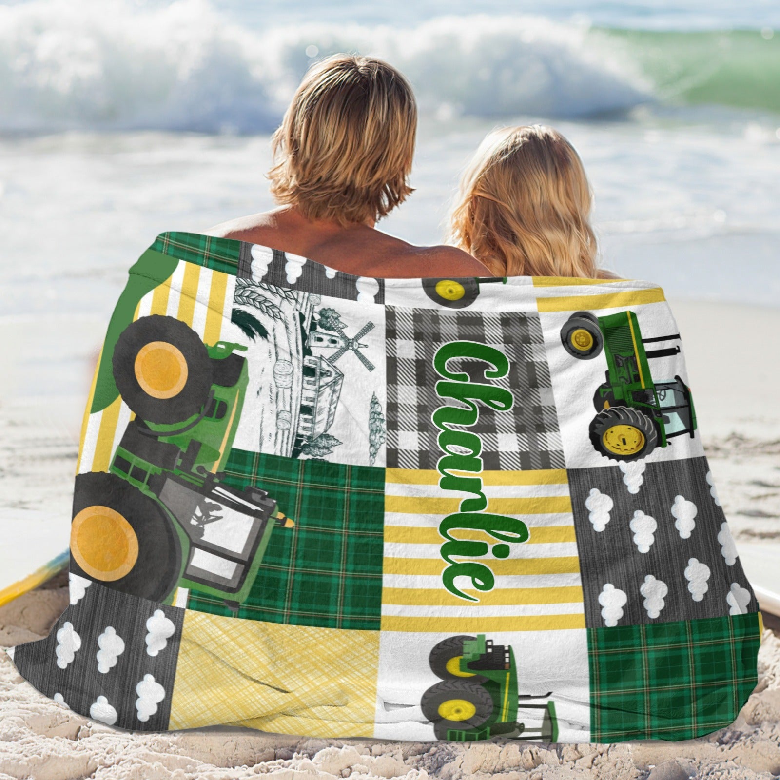 Tractor Patchwork Flannel Blanket Custom Name Blanket Gift for Men Women